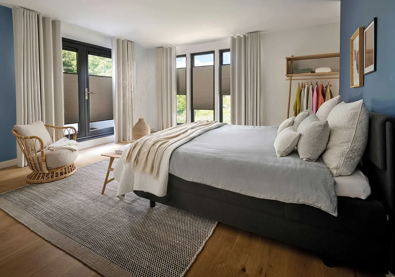 Iedereen kent het wel: in de zomer wordt het binnen oncomfortabel warm, terwijl je in de winter juist merkt dat er kou via de ramen naar binnen komt. Hier komt slimme raamdecoratie om de hoek kijken. Denk bijvoorbeeld aan gordijnen of Duette® Shades met isolerende eigenschappen. Ze houden de warmte in de winter binnen en de hitte in de zomer buiten.