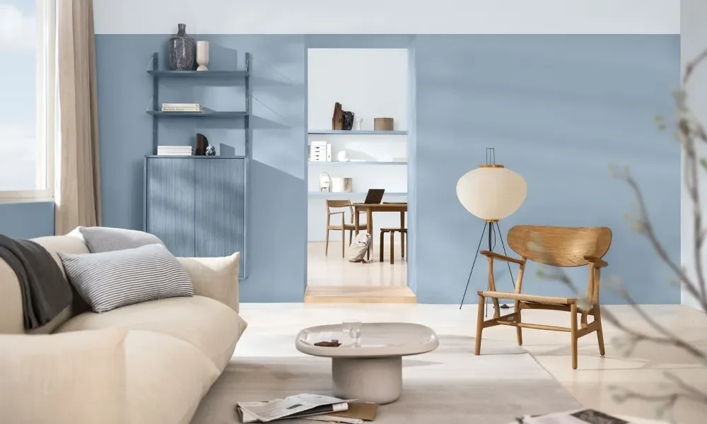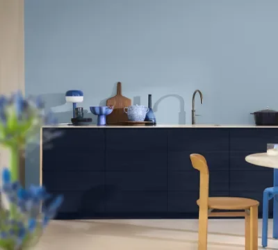 Verf is de sleutel tot een interieur vol rust en sfeer. Mellow Flow staat centraal in deze stijl: een zachte lichtblauwe tint die ontspanning en harmonie uitstraalt. Als accent of op alle muren, Mellow Flow voegt frisheid en karakter toe zonder te overheersen.