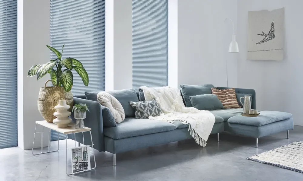 Raambekleding in zachte, luchtige blauwtinten brengt direct rust en sfeer in je interieur. Jaloezieën, plissés of rolgordijnen in deze tinten filteren het licht op een subtiele manier en creëren een serene, uitnodigende uitstraling. Combineer ze met natuurlijke materialen en organische vormen om een harmonieus geheel te vormen. Zo voeg je stijl en diepte toe aan je ramen, zonder dat het te druk wordt.