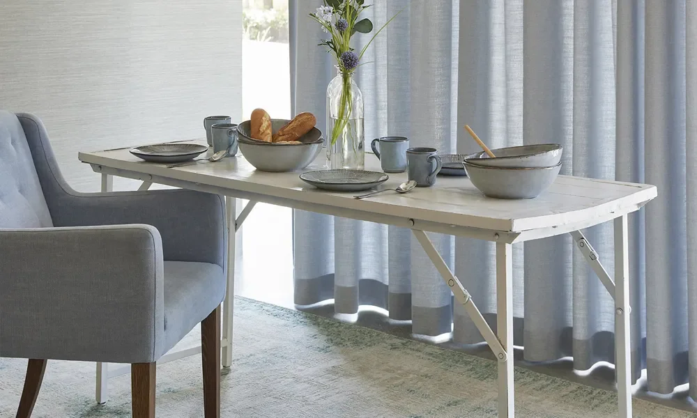 Gordijnen in zachte, luchtige blauwtinten geven elke ruimte een gevoel van rust en elegantie. Van vloeiende stoffen tot lichtdoorlatende materialen: ze zorgen voor een zachte filter van licht en voegen tegelijk textuur en warmte toe. Combineer met organische vormen en subtiele patronen om een harmonieus, serene interieur te creëren dat stijlvol én uitnodigend aanvoelt.