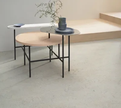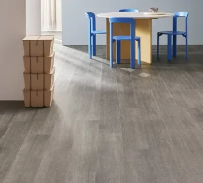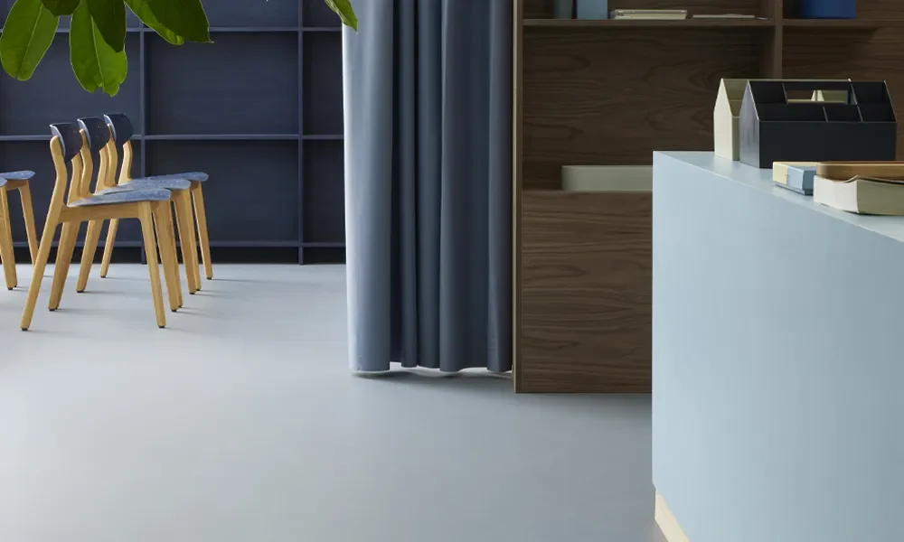 Binnen Mellow Flow vormt de vloer een rustige, lichte basis. Marmoleum en pvc in zachte houtstructuren, lichte grijstinten of koele beige nuances passen perfect bij de luchtige lichtblauwe muren. Zo ontstaat een interieur dat sereniteit uitstraalt, maar toch karakter heeft. Bovendien zijn deze vloeren praktisch in onderhoud en tijdloos in uitstraling, ideaal voor een stijlvol en vloeiend interieur.
