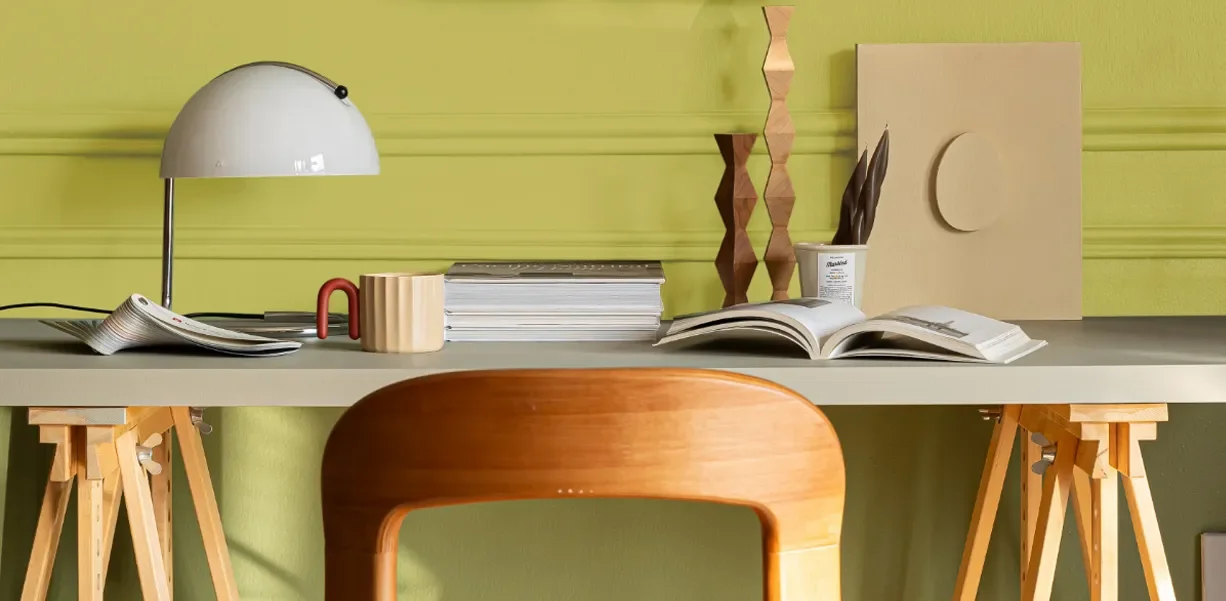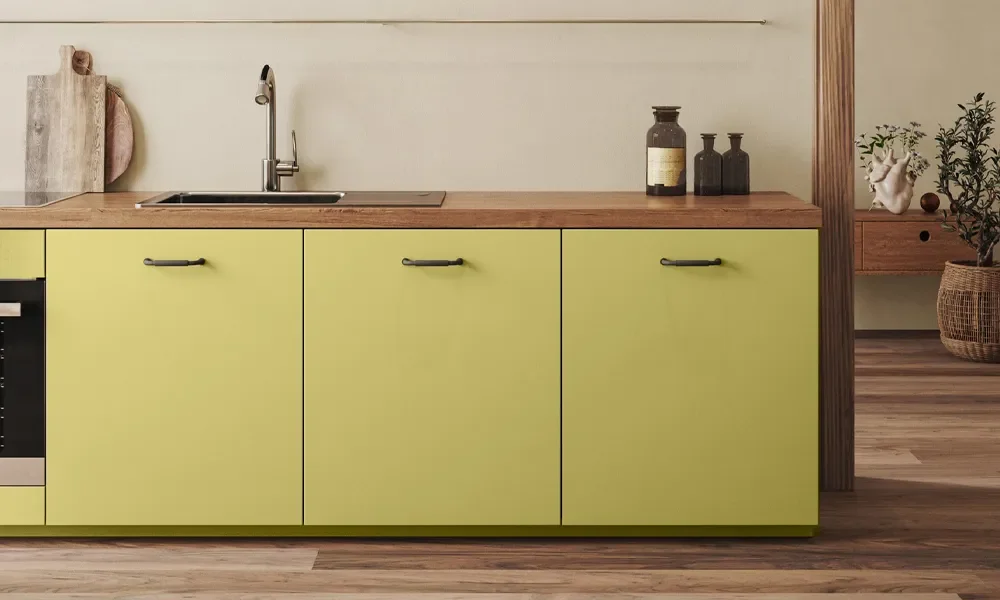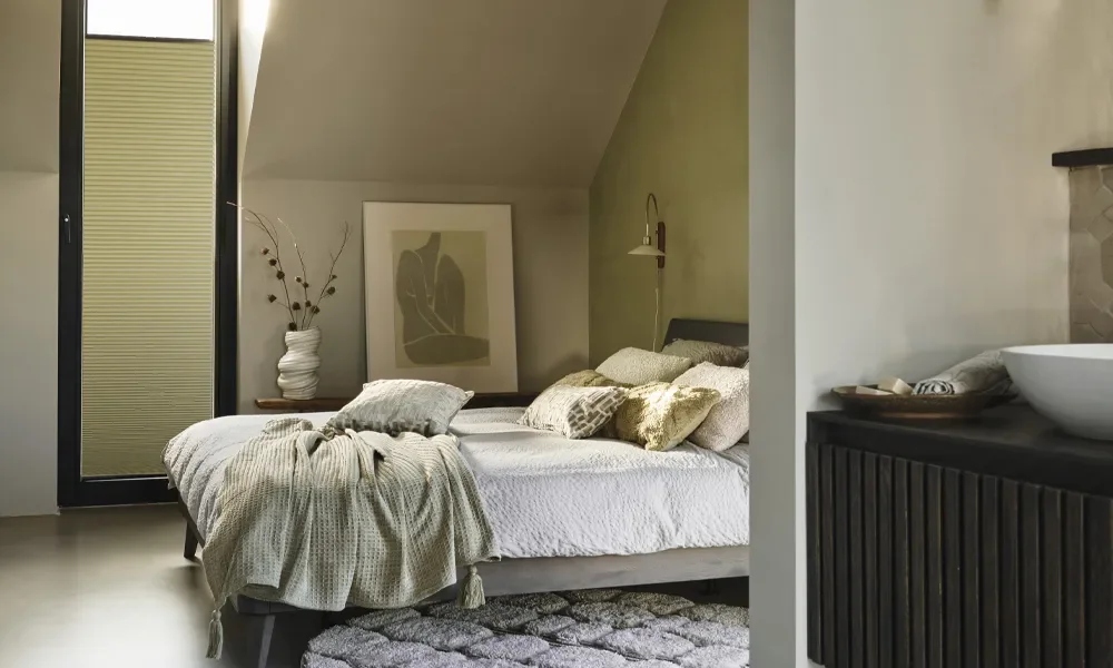 De Sigma kleur van het jaar 2026, een vergrijsde groentint met een vleugje warmte, vormt het hart van deze stijl. Perfect in balans tussen natuur en elegantie.